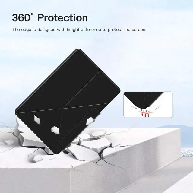Unique origami design cover allows for vertical and horizontal standing. You can stand the Tablet up without holding onto it