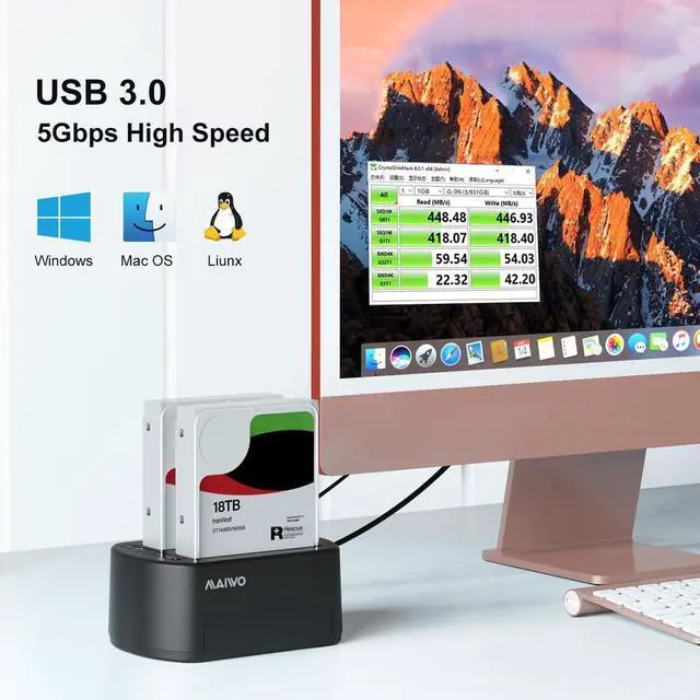 MAIWO External Hard Drive Docking Station with Offline Clone for 2.5 / 3.5" SATA HDD/SSD, 5Gbps with UASP, 48TB Capacity, Dual Bay USB 3.0 to SATA Adapter Duplicator