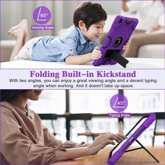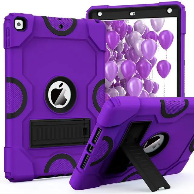 ZoneFoker for iPad 9th/8th/7th Generation Case, 10.2 Inch 2021/2020/2019 Case, Heavy Duty Rugged Shockproof Protective Cover with Kickstand for Kids Boys Girls - Dark Purple