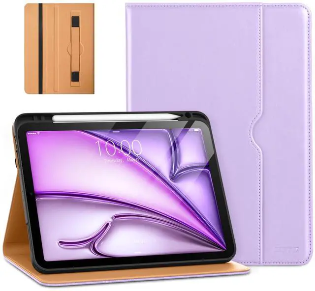 DTTO for iPad Air 11-inch Case M3/M2 (2025/2024), iPad Air 5th / 4th Generation (2022/2020), Premium Leather Business Folio Stand Cover with Pencil Holder - Auto Sleep/Wake, Lavender