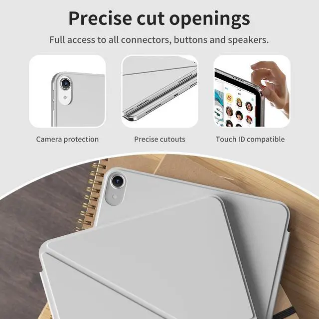 Ultra-thin magnetic case, strong built-in magnets ensure a secure fit between the case and the iPad 10.9/11-inch, easy to install and remove. It features super-strong magnetism and a detachable construction. When you open or close the case, the smart magnetic stripe sensor automatically wakes or puts the tablet to sleep to m