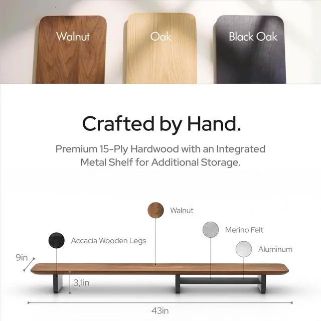 MADE BY HAND: Crafted from high-quality hardwood, our desk stand for monitor not only provides robust support for wide and dual monitors. Each shelf is unique, ensuring you have a one-of-a-kind piece that stands out.