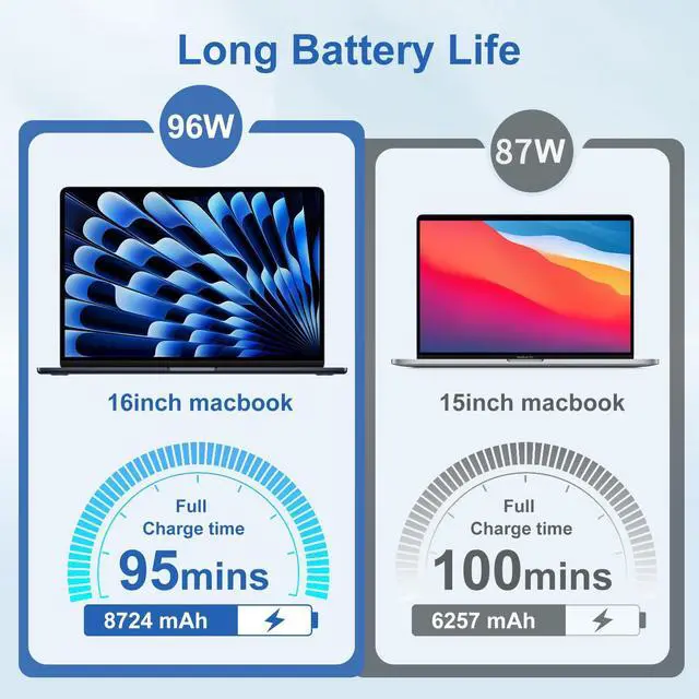Super Fast Charging: Rapidly charge your Mac Pro 14-inch (M4, 2025) or Mac Air 13-inch (M4, 2025) to 50% in just 30 minutes. This charger provides greater charging stability and higher efficiency compared to 70W, 67W, or 35W chargers, meeting the high-speed processing demands of M1, M2, M3, and M4 Pro Max chips.