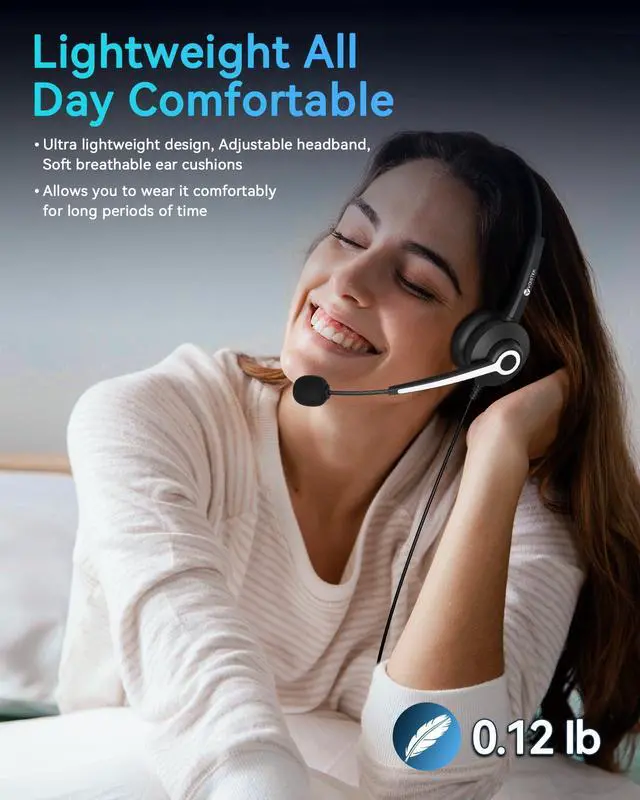 All-Day Comfort for Long UseThis lightweight work headset has soft, breathable ear cushions and an adjustable headband. It fits all h