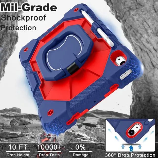 Mil-Grade Drop ProtectionThe ipad 10.9 inch 10th gen case is made of shockproof PC and soft silicone,upgrad grade thickened corners & shock-proof design,with built-in screen protector to prevent daily scratches caused by rough surfaces or sharp objects and raised edges to protect camera,super shock absorption provides full body protectio