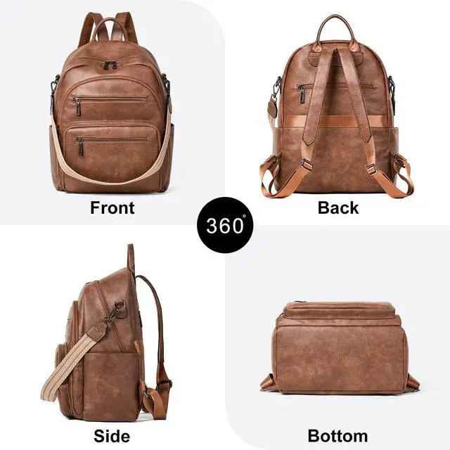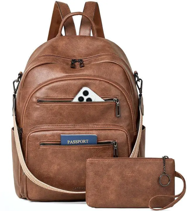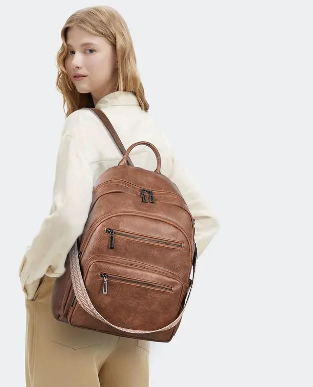 LATMAP Backpack Purse for Women Laptop Backpack, Leather Travel Backpack Shoulder Bag Teacher College Daypack Work Handbag fits 14" Laptop-Brown