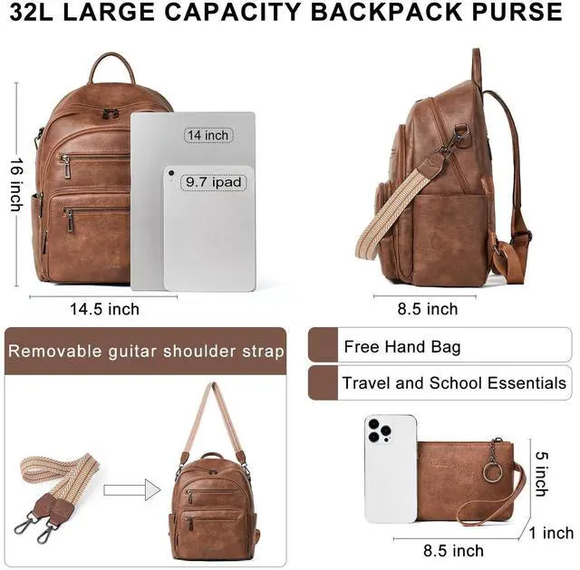 [UPGRADED DIMENSIONS] LATMAP elevates everyday carry with high capacity backpacks engineered for modern demands. Our upgraded backpack measures 14.5"x8.5"x16", almost 50%+ more space than standard leather packs. The leather backpack includes padded compartments for 14"laptop, comfortably holds A6 files, books, office papers, water bottles, clothes and your daily items.