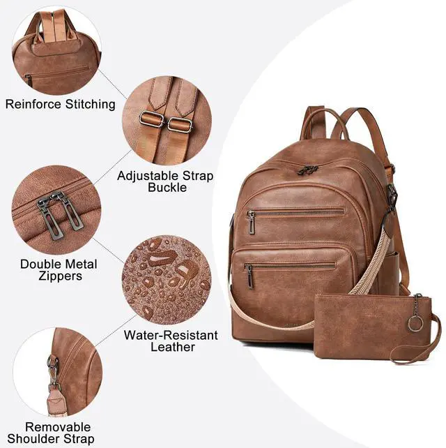 [SMART ORGANIZATION] This multi-compartment laptop backpack women redefines tidy storage. Includes 2 main zipper compartments, 4 inside compartments, 3 front zippered pockets, 2 side pockets for water bottles, and a hidden rear pocket for valuables. The laptop compartment is suitable for 16-inch laptops.