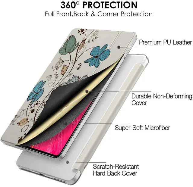 DuraSafe Cases for iPad PRO 11 Inch 2nd 3rd [ PRO 11 2020 2 2021 3 Gen ] A2377 A2459 A2228 A2068 A2230 A1980 A2013 A1934 A1979 Printed Hard Smart PC Transparent Back Cover - Watercolor Flowers