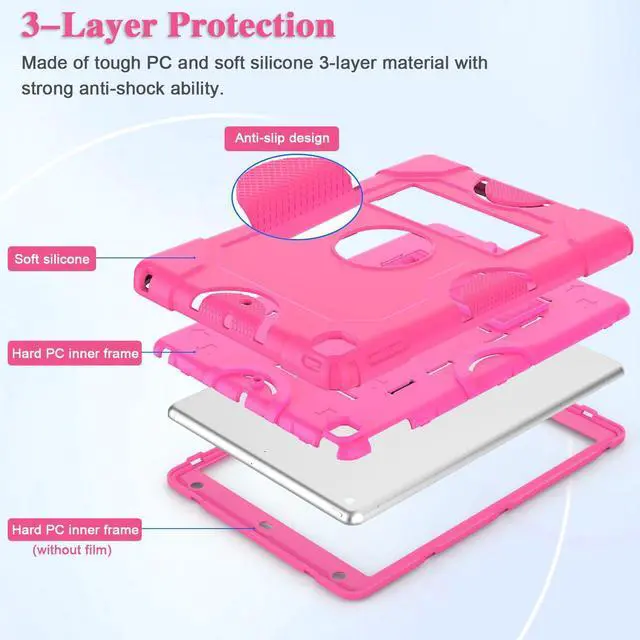 Shockproof Rugged Design: iPad 10.2 Case made of durable Hard PC+Silicone, 3-layer Full Body protection structure, provide a perfect protection, protects your iPad 9th/ 8th/ 7th Generation from scratches and accidental drops, bumps and impacts