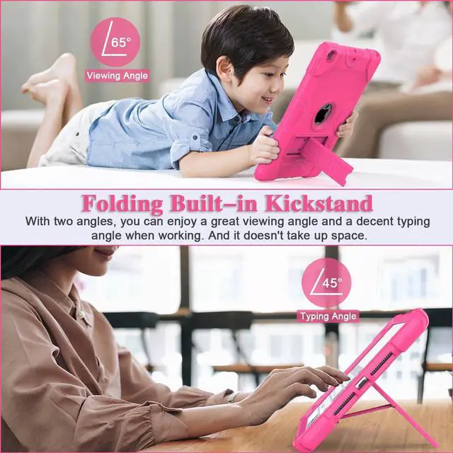 ZoneFoker for iPad 9th 8th 7th Generation Case, iPad 10.2 Inch 2021/2020/2019 Case, Heavy Duty Rugged Shockproof Protective Cover with Kickstand for Girls Kids Women Hot Pink