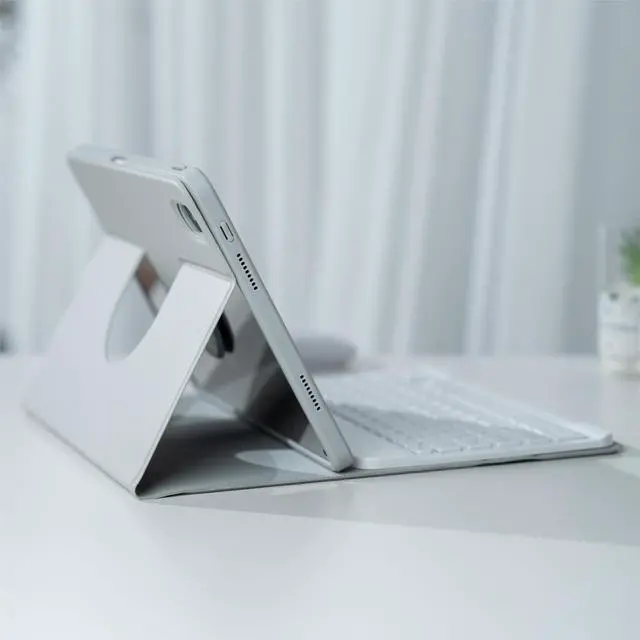[Detachable Keyboard]The magnetic keyboard is separate from the case and attaches via magnets. The keyboard connects via Bluetooth for easy operation and can be detached when not in use.