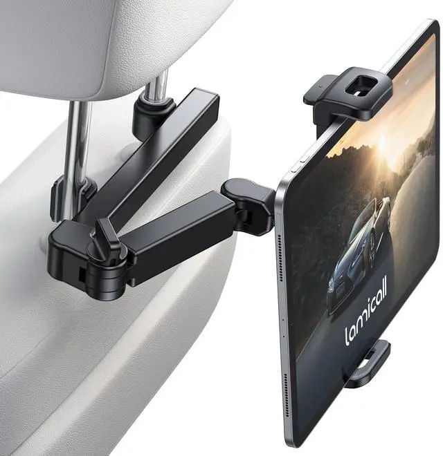 Lamicall Car Headrest Tablet Holder - [3 in 1 Extension Arm] Adjustable Tablet Car Mount for Back Seat, Road Trip Essentials for Kids, for 4.7 -11" Device Like iPad Pro, Air, Mini, Galaxy, Fire, Black