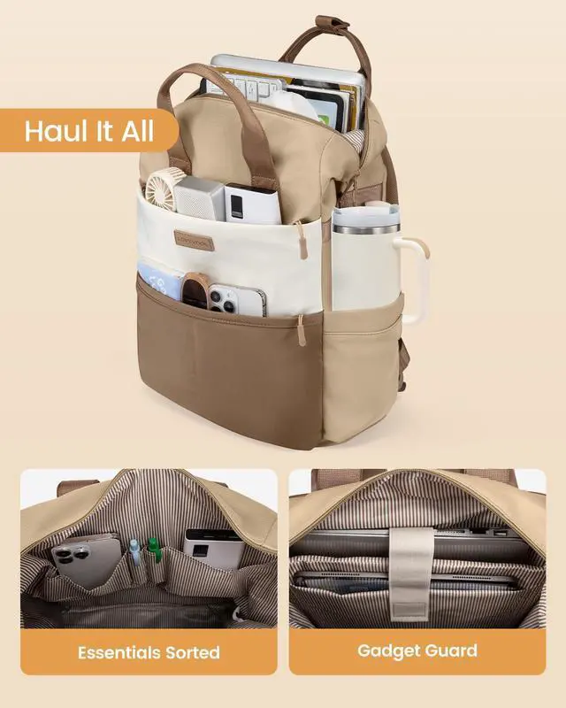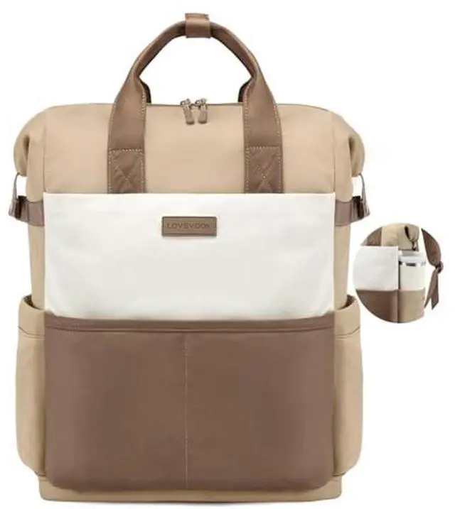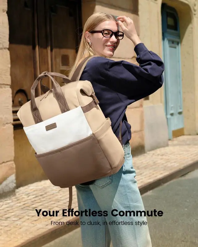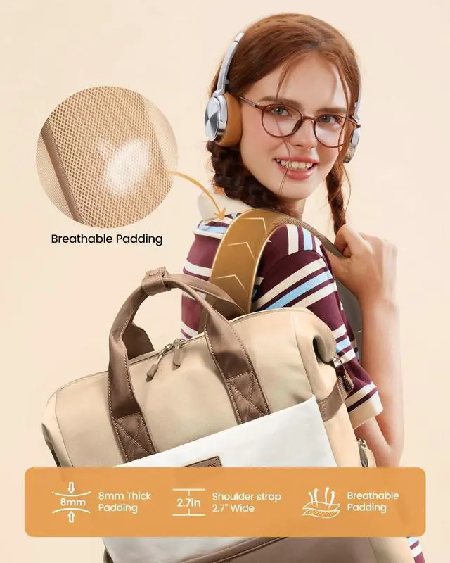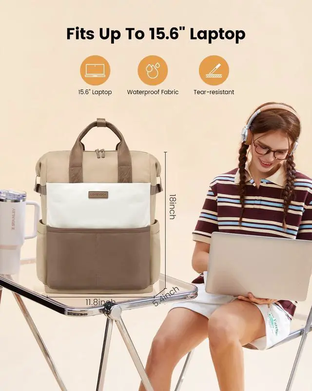 LOVEVOOK Laptop Backpack for Women, 15.6 Inch Work Travel Backpack Purse for School College Bookbag for Teen Girls Cute Computer Backpack for Teacher Nurse Business, Coffee-Beige