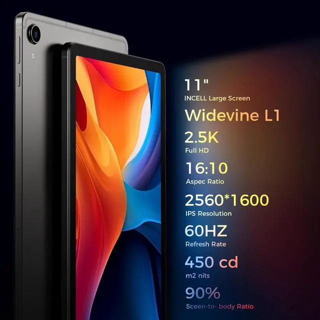 11 2560*1600 IPS Display: Experience the clarity and vividness of the 11-inch FHD IPS in-cell display with a resolution of 2560*1600. Enjoy media with immersive audio thanks to the integrated dual speakers, which also support Widevine L1 for a seamless streaming experience.