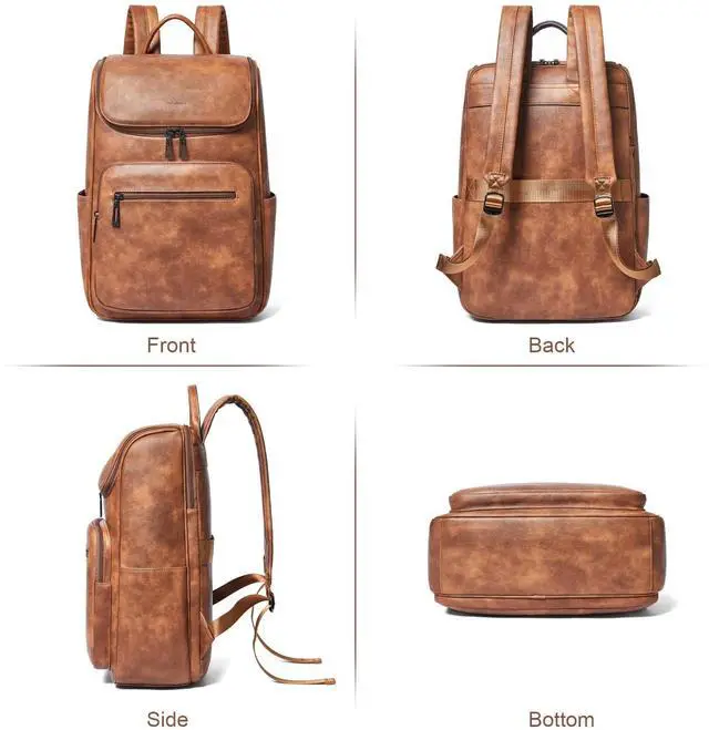 Large Capacity Backpack:Leather laptop backpack has 10 pockets, easy to organizing daily necessities such as laptop,iPad,A4 files, books,kindle,phone,chargers,umbrella,water bottle,wallets,cosmetics and everyday items. The womens laptop backpack suitable for various scenarios,including work,business,travel,commuting,college,daily use.
