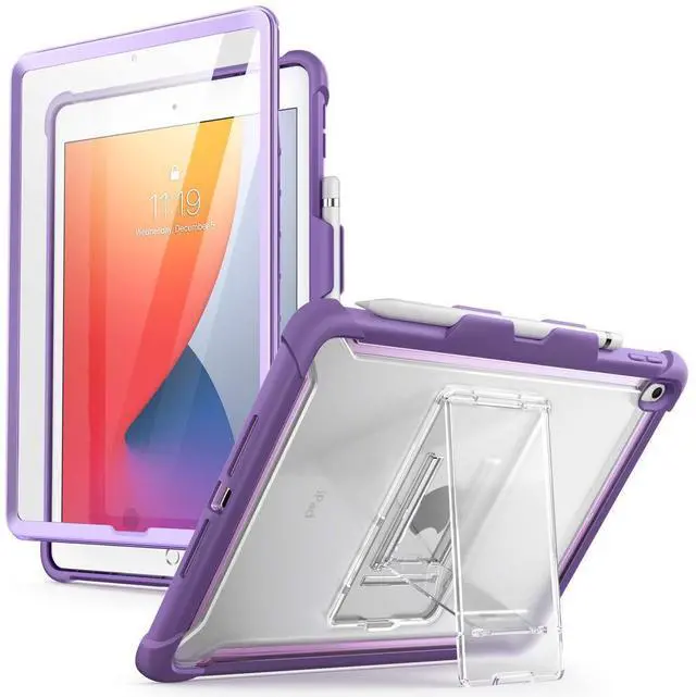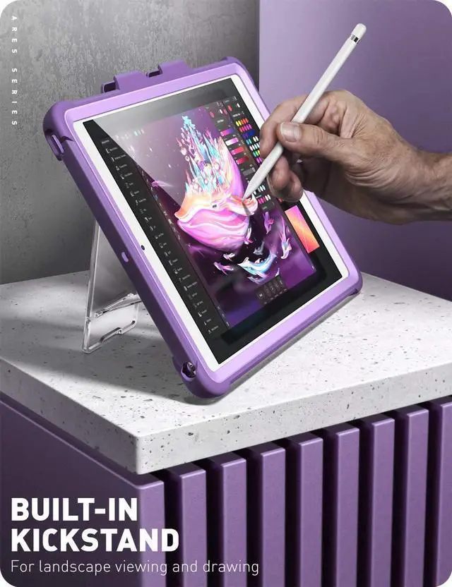 i-Blason Ares Case for New iPad 9th/8th/7th Generation, iPad 10.2 2021/2020/2019 Case, Full-Body Kickstand with Built-in Screen Protector Cover with Pencil Holder (Purple)