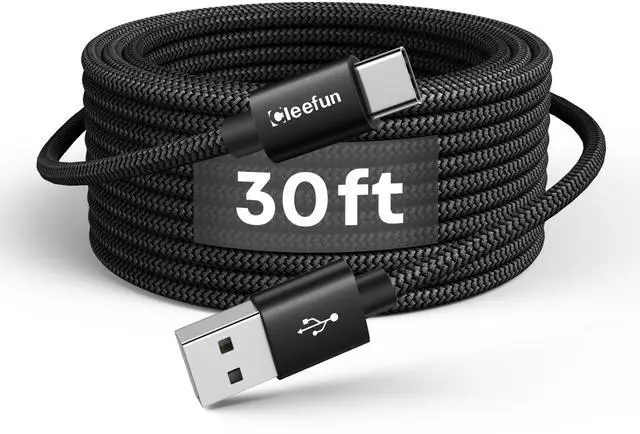 CLEEFUN usb c 30ft cable support all usb c devices supported QC 2.0 / 3.0 / 4.0 QC quick charge protocol, faster than most traditional usb to usb c 30ft.