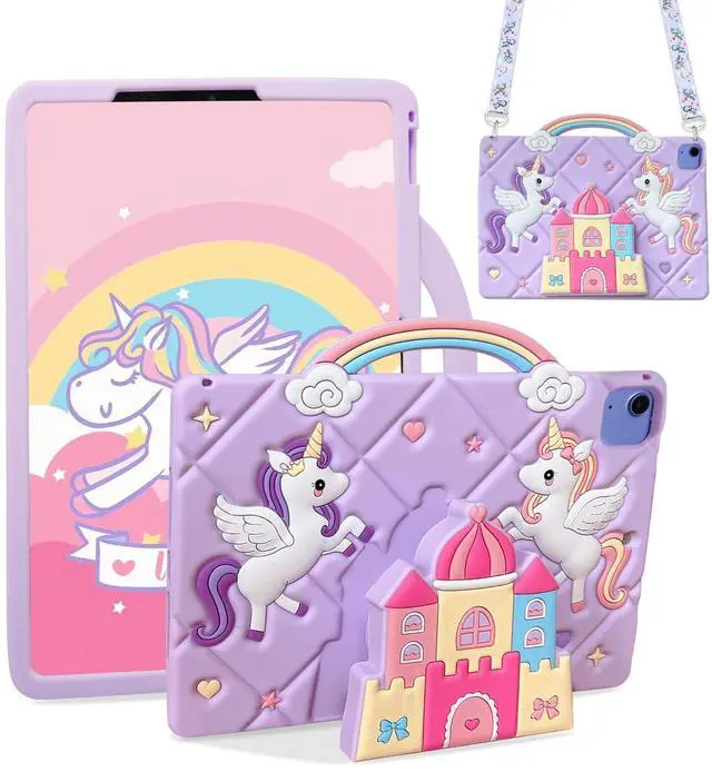 ACEMO for iPad Air 11 inch Case M2 (2024) iPad Air 5th Genereation Case with Kickstand Shoulder Strap Kids Girls Cute Stand Silicone Cover for iPad Air 5th 4th 10.9 inch, iPad Air 6th 11 inch, Purple