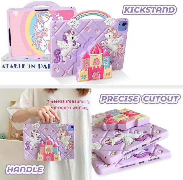 3D Cartoon KickstandA adjustable 3D cartoon kickstand on this ipad air case 11 inch, adding an adorable appearance to your tablet while also providing a stable and adjustable stand for versatile activities such as reading, typing, browsing websites, or video calling with friends.