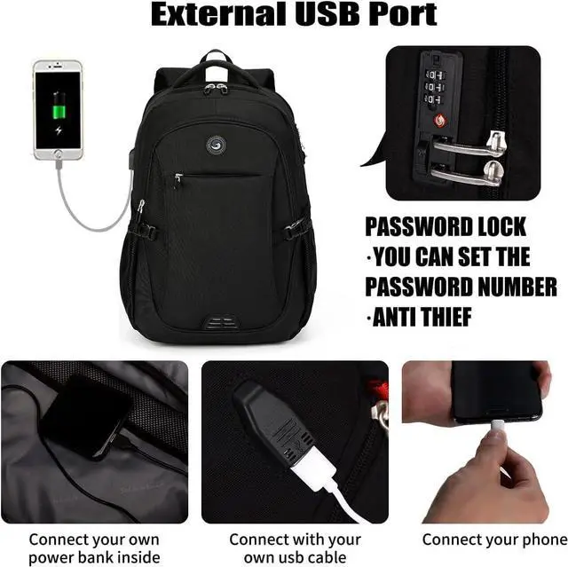 SHRRADOO Anti Theft Laptop Backpack Travel Backpacks with usb Charging Port for Women Men High School College Backpack Computer Bag Fits 17 Inch Laptop,Grey