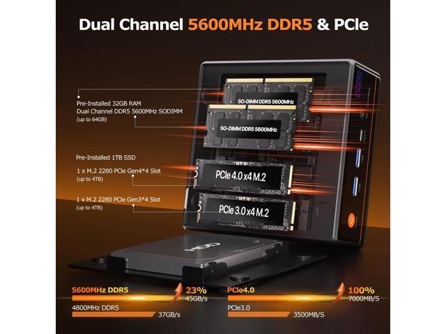 - 4GB Large-Capacity VRAM BIOS allows you to adjust graphics memory capacity up to 4GB on this mini gaming PC, supporting graphics-intensive tasks like AI acceleration, 4K video editing, 3D modeling, and CAD design. Equipped with 8CU RDNA3 AMD Radeon 760M, it offers 2.3x the performance of the Zen 3+ Radeon 680M, with over 30% better multitasking and computational performance, 29% higher single-core, 45% better multi-core, and 35% faster gaming frame rates at 1080p high quality.