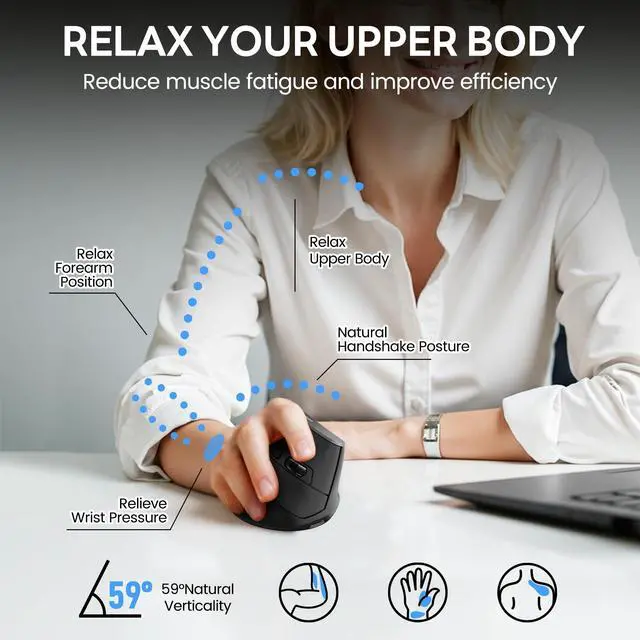 Ergonomic Design for Comfort: The vertical mouse provides an ergonomic mouse solution with a comfortable grip, reducing wrist strain and promoting better posture for long-term use. Ideal for ergonomic mouse wireless needs. Mouse Dimensions: L x W x H 11.6 x 7.2 x 7.5 cm /4.57 x 3.03 x 2.95 inches.