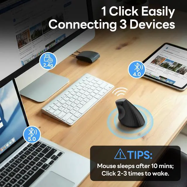 Easy Wireles Connectivity: With BT5.0/4.0 /2.4G wireless technology, this wireless ergonomic mouse offers stable and fast connections, ensuring seamless performance across various devices, including Phonetabletlaptops and PCs,as long as it has Bluetooth fuction or USB interfaces.