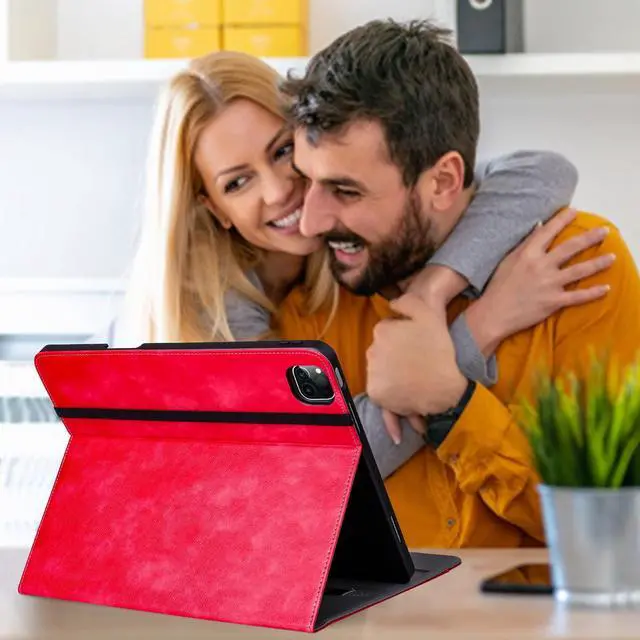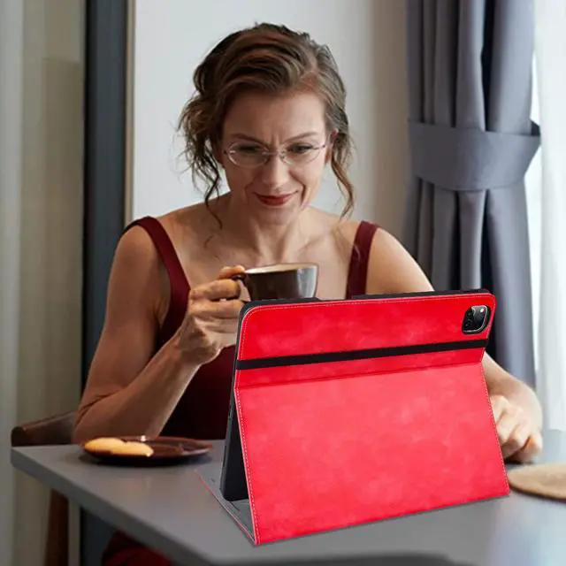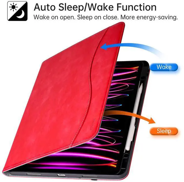 HFcoupe iPad Pro Case 12.9 inch Generation 6th 2022 /Gen 5th 2021, iPad Pro 12.9 Cases with Pencil Holder and Pocket, Multiple Angles Viewing Folio Cover with Auto Sleep/Wake, Red
