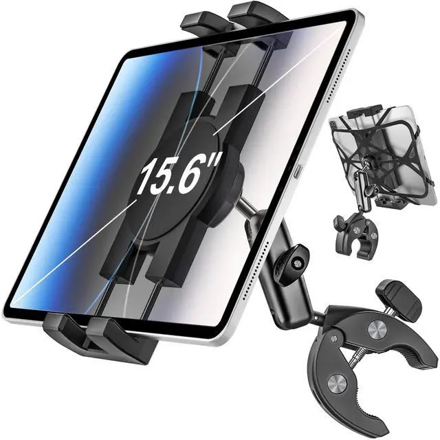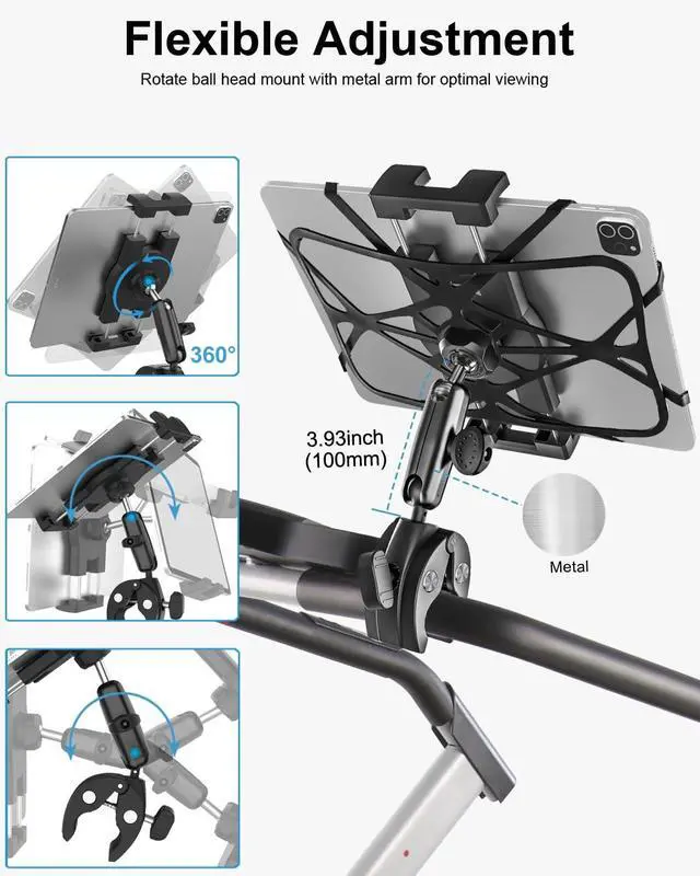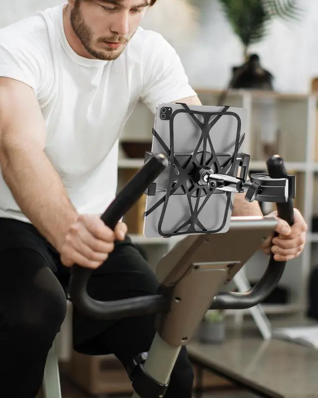 Tablet Protection and Shock-AbsorbingThe iPad clip holder comes with a soft and elastic silicone mesh,the middle of the mesh fixed to the mount and the both ends of the mesh secured to the four corners of the tablet, always tying the tablet and the holder together. The silicone mesh cover is thickened to resist strong vibrations and impacts. Even if the exercise is intense, the tablet is firmly fixed to the handlebars and will not fall off.