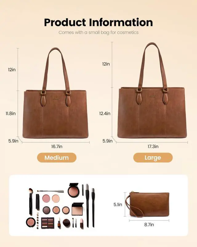 Lightweight & Comfortable Design This 2.2 lb laptop tote bag for women features super soft PU leather that won't dig into your shoulder. The smooth metal zipper and classic design make it perfect for both work and everyday use. No weird smells - ready to use right away