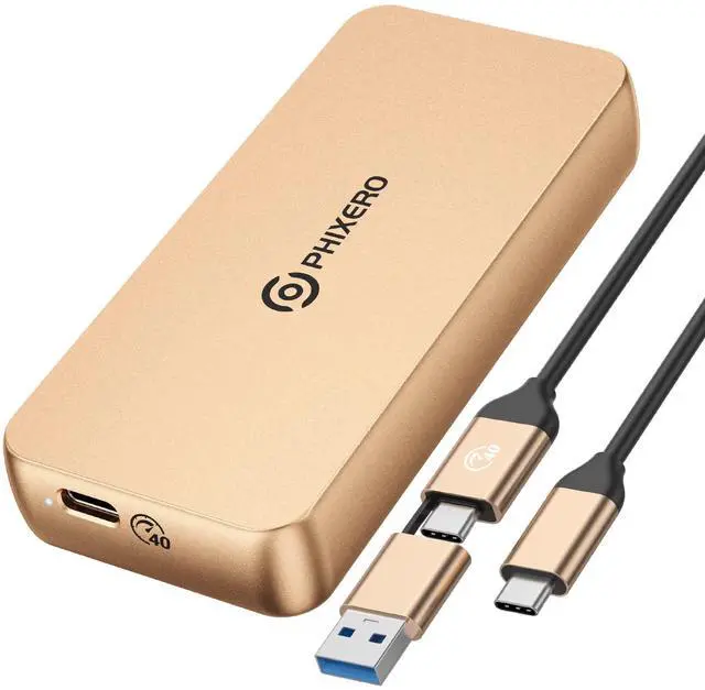 PHIXERO 40Gbps NVMe Enclosure, USB 4.0 M. 2 Enclosure Compatible with Thunderbolt 3/4/USB 3.2 / 3.1 / 3.0 / 2.0, Aluminum Triple Heat Dissipation SSD Enclosure with UASP, for 2280 Size M-Key NVMe SSD, Gold
