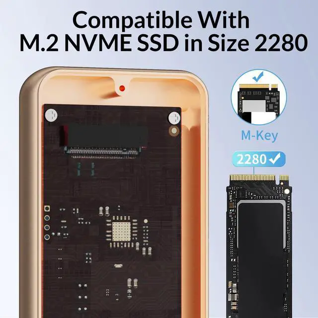 Wide CompatibleM.2 NVME enclosure is suitable for Windows, LINUX, Mac OS 8.0 and above systems. Compatible with M-Key/B&M-Key M.2 NVME SSD. It can be used with WD, Samsung, Crucial, Seagate and other brands of M.2 SSD.