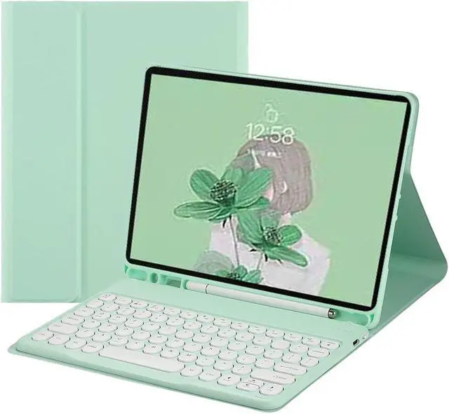 HENGHUI Keyboard Case for Galaxy Tab S6 Lite 10.4 inch Keyboard Case Cute Round Key Color Keyboard Wireless Detachable BT Keyboard Cover with S Pen Holder (MintGreen)