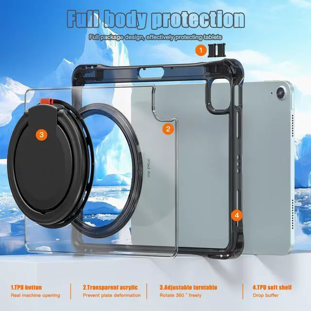 Full Body Protection: 2025 for iPad Air 11 inch M3 case Made of Premium Clear exterior and soft TPU back cover, 360 fully protect your iPad against shocks, drops and impacts. Soft microfiber lining prevents your for iPad Air 11 inch M2 tablet screen from scratches