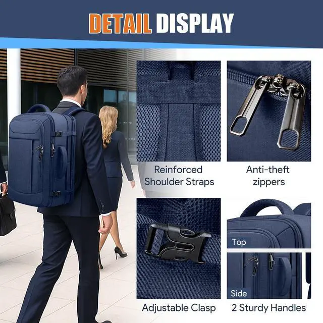 Travel Laptop Backpack, Expandable 40-50L Travel Backpack, 17.3 Inch Carry on Large Luggage TSA Flight Approved Laptop Bag, Multiple Pockets TSA Friendly Water Resistant Business Bag for Men, Blue