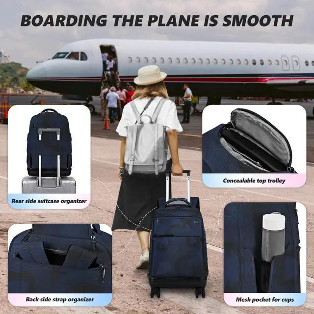 Ailouiskids Rolling Backpack with Removable Wheels,18 inch Laptop Backpack with Wear-Resistant Chassis Carry on Travel Backpack Water Resistant Wheeled Backpacks for Women Men
