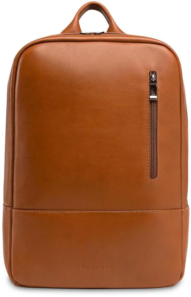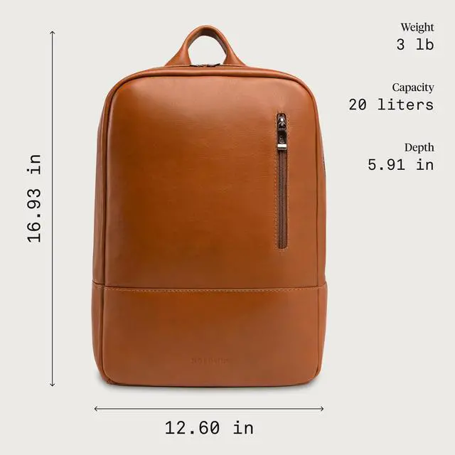 The Nordweg Nomad Leather Laptop Backpack combines elegance, functionality, and versatility in a compact design. Handcrafted in Brazil from premium full-grain bovine leather, it features a durable dark gray cotton-polyester lining and timeless minimalist style suitable for work, school, or travel. The backpacks 20-liter main compartment offers ample space for notebooks, chargers, books, and folders, and includes two smaller zippered pockets for organizing essentials like keys or headphones. A front quick-access zippered pocket adds convenience for items you need at hand. The included removable leather laptop case fits devices up to 15.6 inches ( 14.57 x 9.84 x 0.79 in) and can be used independently or inside the backpack.