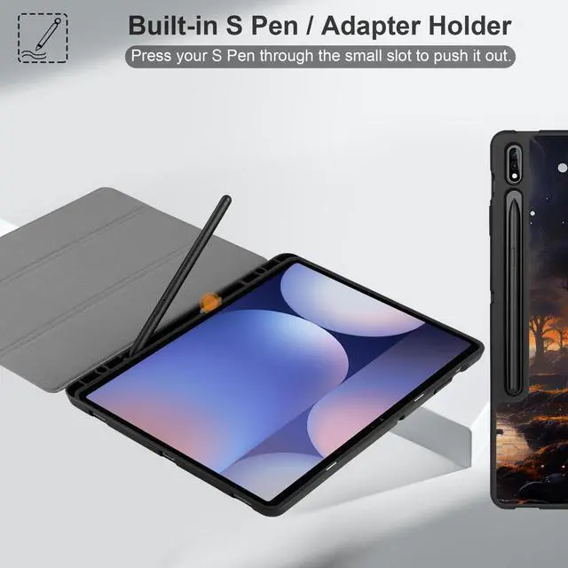 MEEgoodo Case for Samsung Galaxy Tab S10+ 2024/S9 Plus/S9 FE Plus 12.4 inch Cover 2023 with Pen Holder,Tablet Cases with Folding Stand+Soft TPU Back Shell+Smart Auto Wake/Sleep,Fantasy Night Landscape