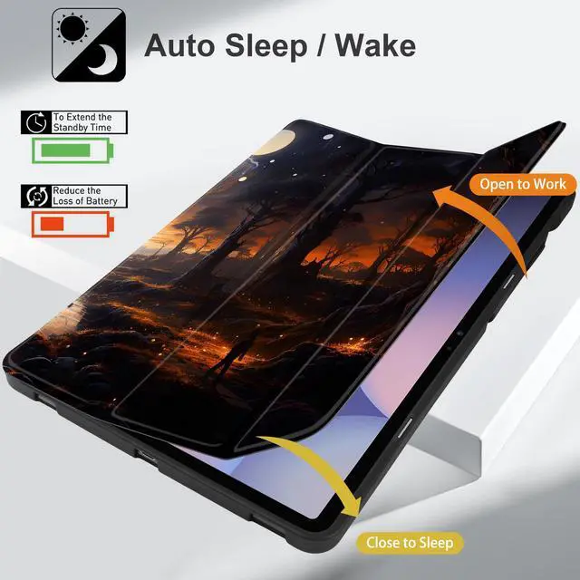 MEEgoodo 3D UV Printing Smart Case Compatible with Galaxy Tab S10/S9 FE/S9 Plus 12.4 inch