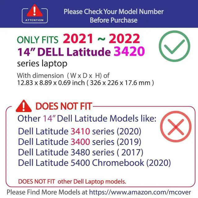 Designed to perfectly fit the 2021 / 2022 14"(diagonal) Dell Latitude 3420 series laptop computer and protect ALL corners.
