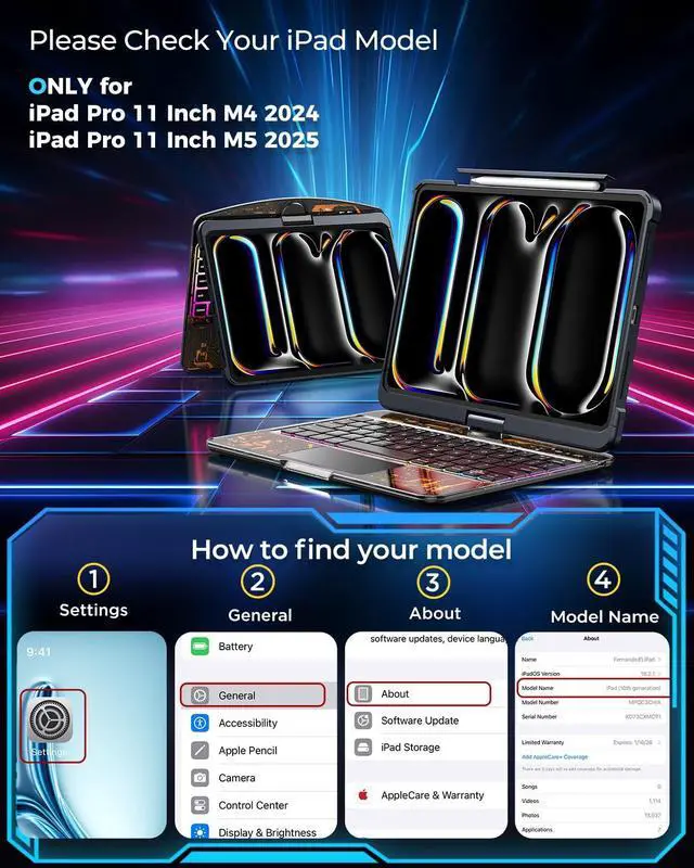 Precise Fit for Your iPad Pro 11: Designed exclusively for iPad Pro 11 inch 2024 M4 and iPad Pro 11 inch M5 2025 . Please double-check your iPad's model number on the back cover to ensure a perfect fit