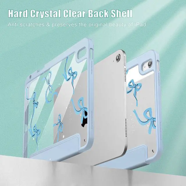 May Chen for iPad (A16) 11th Generation Case 11 Inch 2025, iPad 10th Gen Case 2022 10.9 inch, Built-in Pencil Holder with Shockproof Cover Clear Transparent Back Shell Auto Wake/Sleep, Bows Blue