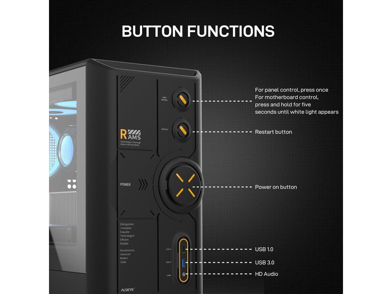 - Stunning Side View & ARGB Control: Features a premium full tempered glass side panel to showcase your build and includes a convenient ARGB control button for easy lighting customization.
