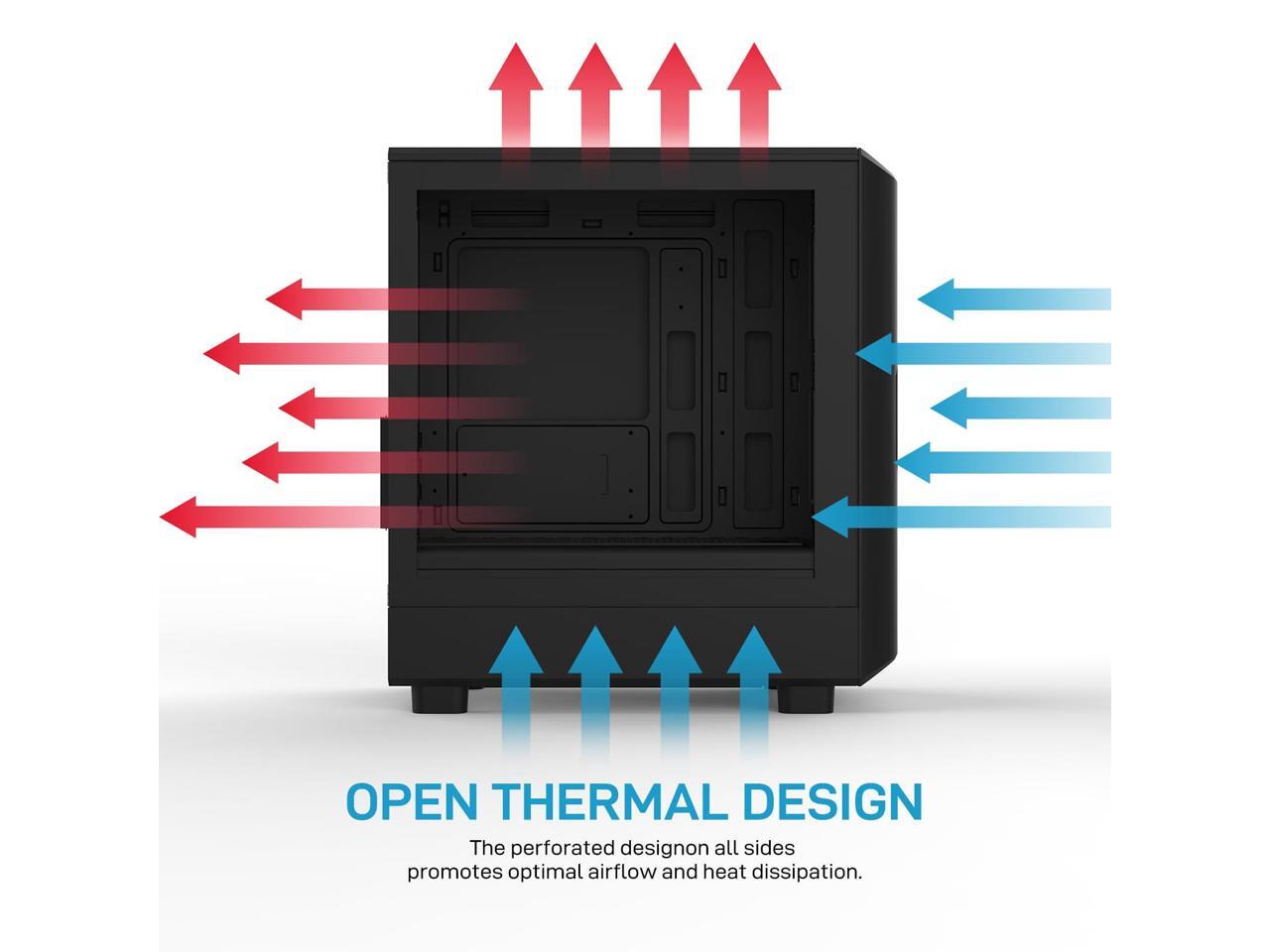 - Optimized Cooling with Dust Protection: Supports up to 6x 120mm fans (2 Front, 2 Top, 2 Bottom, 1 Rear) and a top-mounted 240mm radiator. Equipped with dust filters on key intakes to keep your system clean.