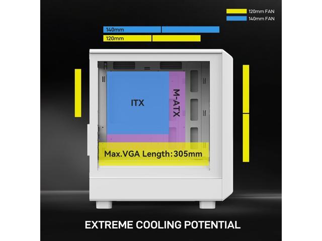 - Spacious Hardware Compatibility: Accommodates Micro-ATX and ITX motherboards. Fits large CPU coolers (up to 180mm), lengthy graphics cards (up to 305mm), and standard power supplies (up to 160mm deep).