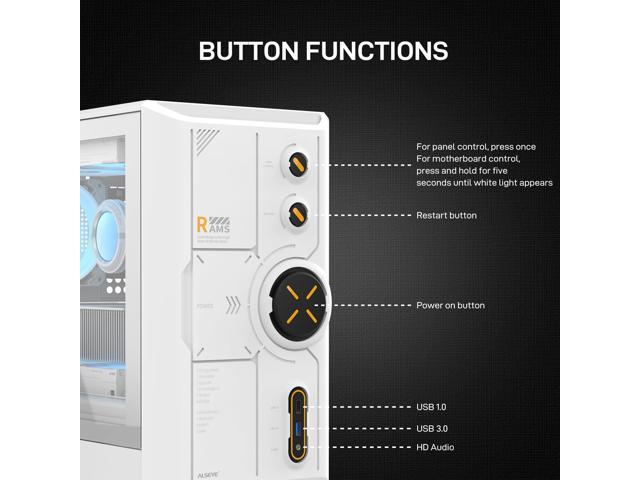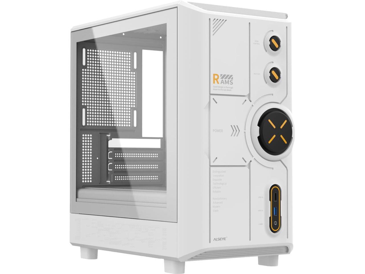 ALSEYE Rams2.0 Mid Tower PC Case Micro-ATX/ITX MATX Tempered Glass Side Panel, ARGB Control Dust Filters Support 180mm CPU Cooler/305mm GPU/160mm PSU 6x120mm Fans 240mm Top Radiator (White)