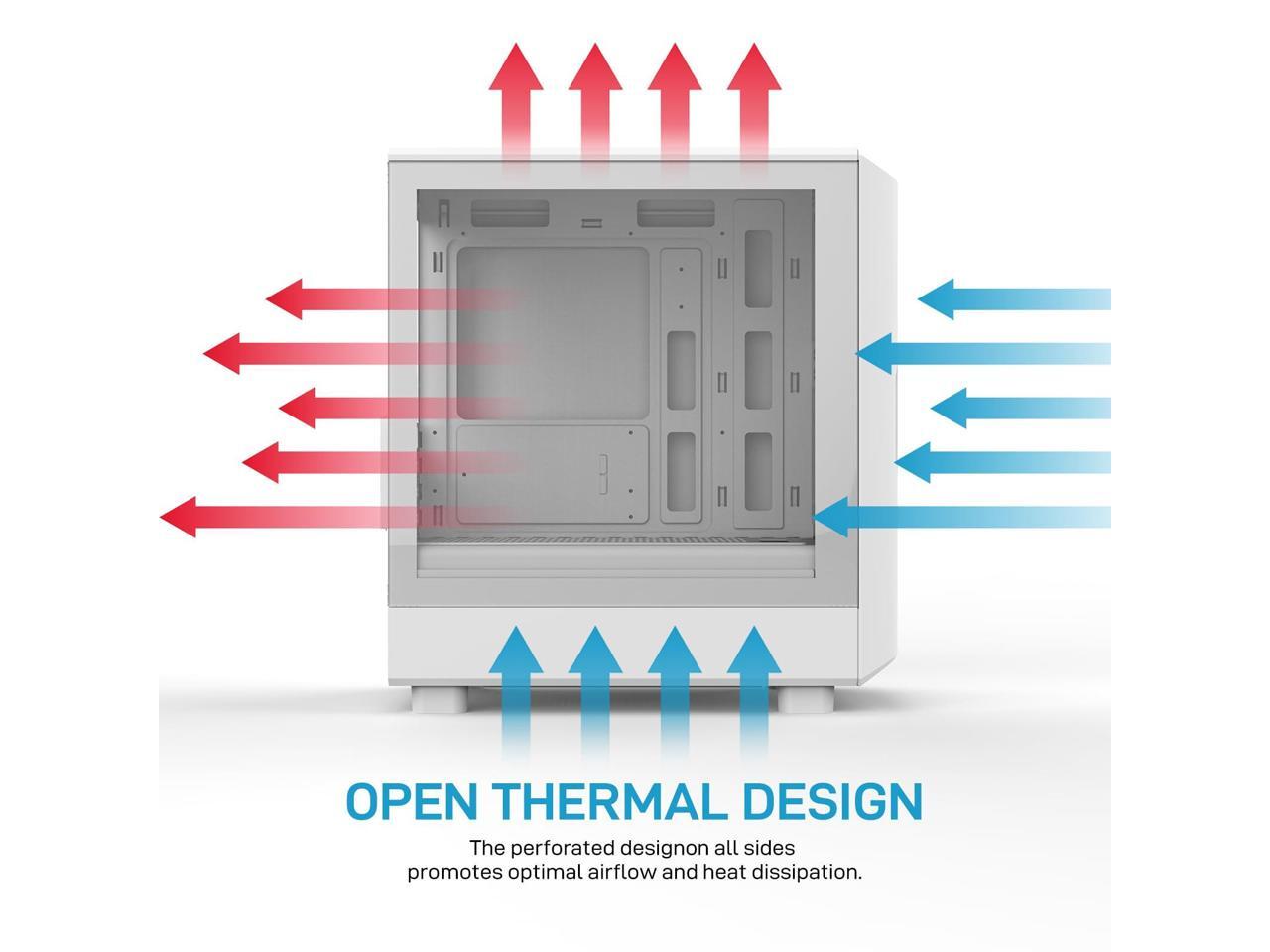 - Optimized Cooling with Dust Protection: Supports up to 6x 120mm fans (2 Front, 2 Top, 2 Bottom, 1 Rear) and a top-mounted 240mm radiator. Equipped with dust filters on key intakes to keep your system clean.