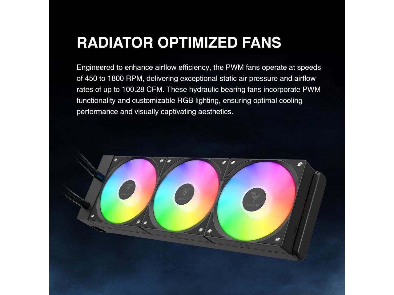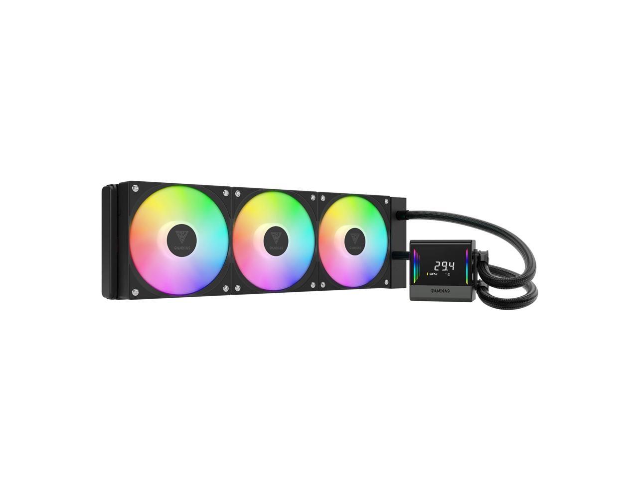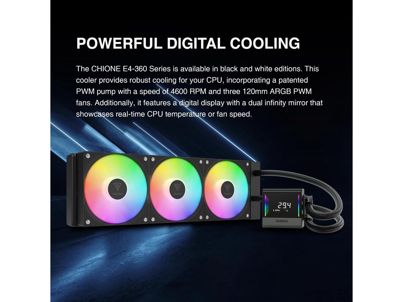 GAMDIAS CHIONE E4-360 Liquid CPU Cooler, 360mm AIO w/Digital Display, Patented PWM Pump, 3X Hidden Cable Fans, Daisy-Chained, Support Low-Noise PWM & ARGB Sync, Intel LGA 1851/1700AMD AM5/AM4, Black