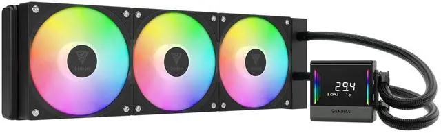 GAMDIAS CHIONE E4-360 Liquid CPU Cooler, 360mm AIO w/Digital Display, Patented PWM Pump, 3X Hidden Cable Fans, Daisy-Chained, Support Low-Noise PWM & ARGB Sync, Intel LGA 1851/1700AMD AM5/AM4, Black